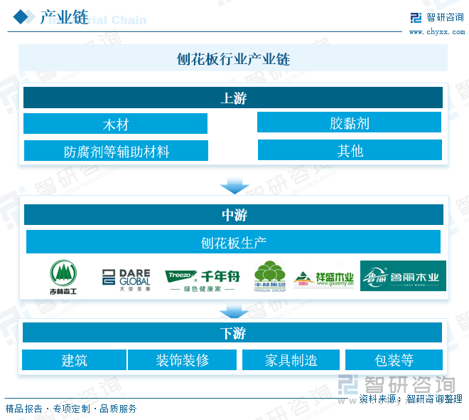 刨花板行业财产链上逛次要为木材、胶黏剂以及防腐剂等辅帮材料。原材料的质量间接影响到刨花板的物能和化学机能。例如,木材的树种、含水率、不变性和耐候性。高质量的原材料可以或许出产出机能更不变、更耐用的刨花板。原材料的价钱波动间接影响到刨花板的出产成本。当原材料价钱上升时,刨花板的出产成本也会响应添加,从而影响企业的盈利能力和市场所作力。财产链中逛次要为刨花板的出产制制。财产链下逛次要使用于建建、粉饰拆修、家具制制以及包拆等范畴。下逛财产如家具制制、建建粉饰、包拆材料等对刨花板的需求量间接影响刨花板行业的出产规模和成长趋向。当这些行业需求兴旺时,刨花板的销量和价钱往往会上升,反之亦然。因而,财产链下逛的市场需求是刨花板行业成长的主要驱动力。