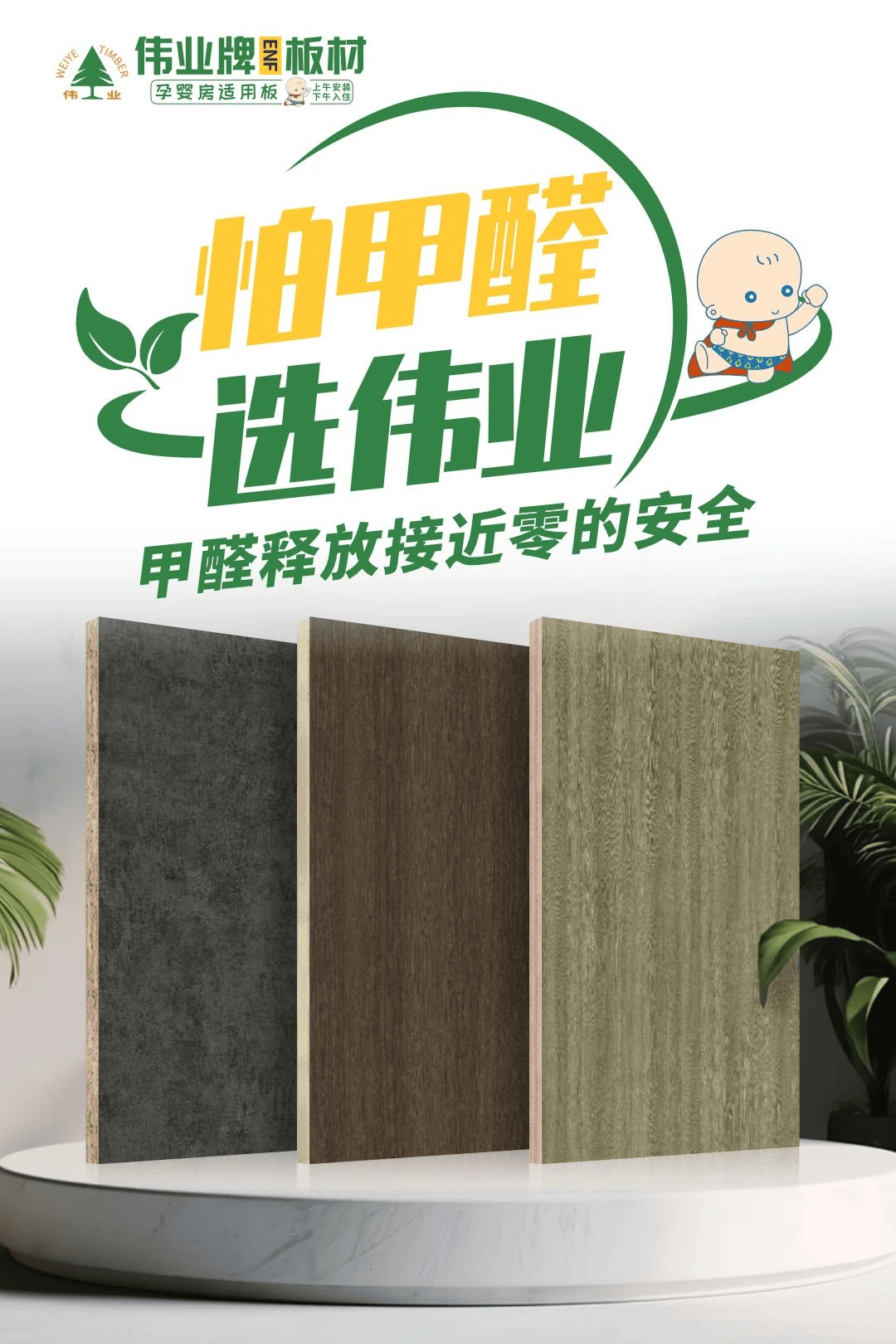 伟业牌板材附属广州市伟正木成品无限公司,创始于1996年,牌以“怕甲醛,选伟业”为焦点,努力于为消费者打制健康、平安的家居。2025年,旗下ENF板材、生态板、欧松板、阻燃板、颗粒板及神锤石膏板六大产物均获“十大品牌”称号。