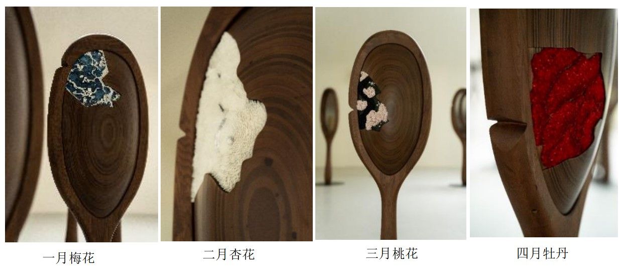“洄游”中的每一个花卉元素都在诉说着不同的故事,桃花的设计采用了具有柔和曲线的造型,配以细腻的纹理,象征春天的复苏与生命的希望。从梅花的坚韧到荷花的优雅,每一种花卉都蕴含着特定的文化内涵与情感共鸣。