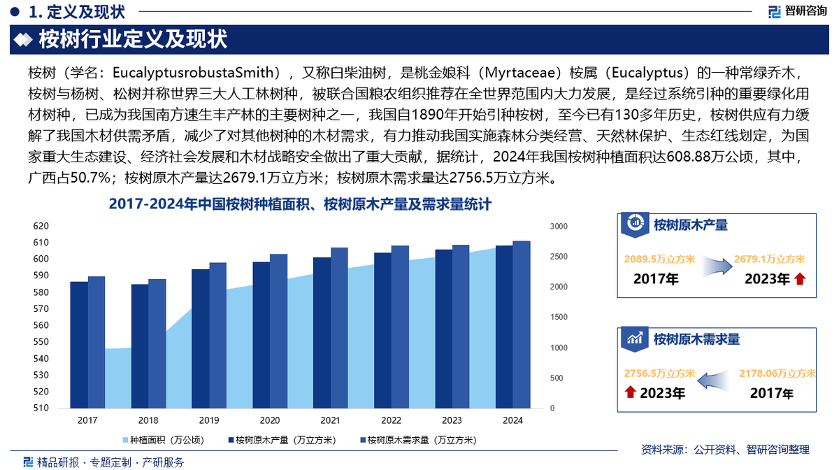 做为一个了中国桉树十余年成长的专业机构,智研征询但愿可以或许取所有努力于取桉树行业企业联袂共进,供给更多无效消息、专业征询取个性化定制的行业处理方案,为行业的成长尽绵薄之力。